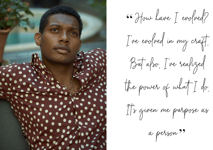 I speak to Shane over Zoom about a month after our photoshoot at The Hollywood Hotel. The actor appears in his dog’s company from his Los Angeles home, down-to-earth and grateful. “I’ve had some projects come out during this time, which has been great — promoting that and seeing it all come to fruition,” he says in spite of a “very whirlwind end of a year.” Born to Jamaican parents, Shane first dived into theater during his sophomore year of high school, which made him get the bug. “I did my first musical — Ragtime — and I played Booker T. Washington. I was terrified,” he recalls. As he found his way to acting, he chose to pursue this path without considering that it wouldn’t work. “I never really had a plan B or plan C — I very much put my eggs in one basket. Maybe I was naive in that sense but I was very excited to do it.” Whereas his dream was to win an Oscar when he was younger, his vision shifted as he has fallen more in love with the craft. “I just want to keep making work that inspires people, that starts conversations and hopefully brings change. I want to keep doing what I’ve been doing.”