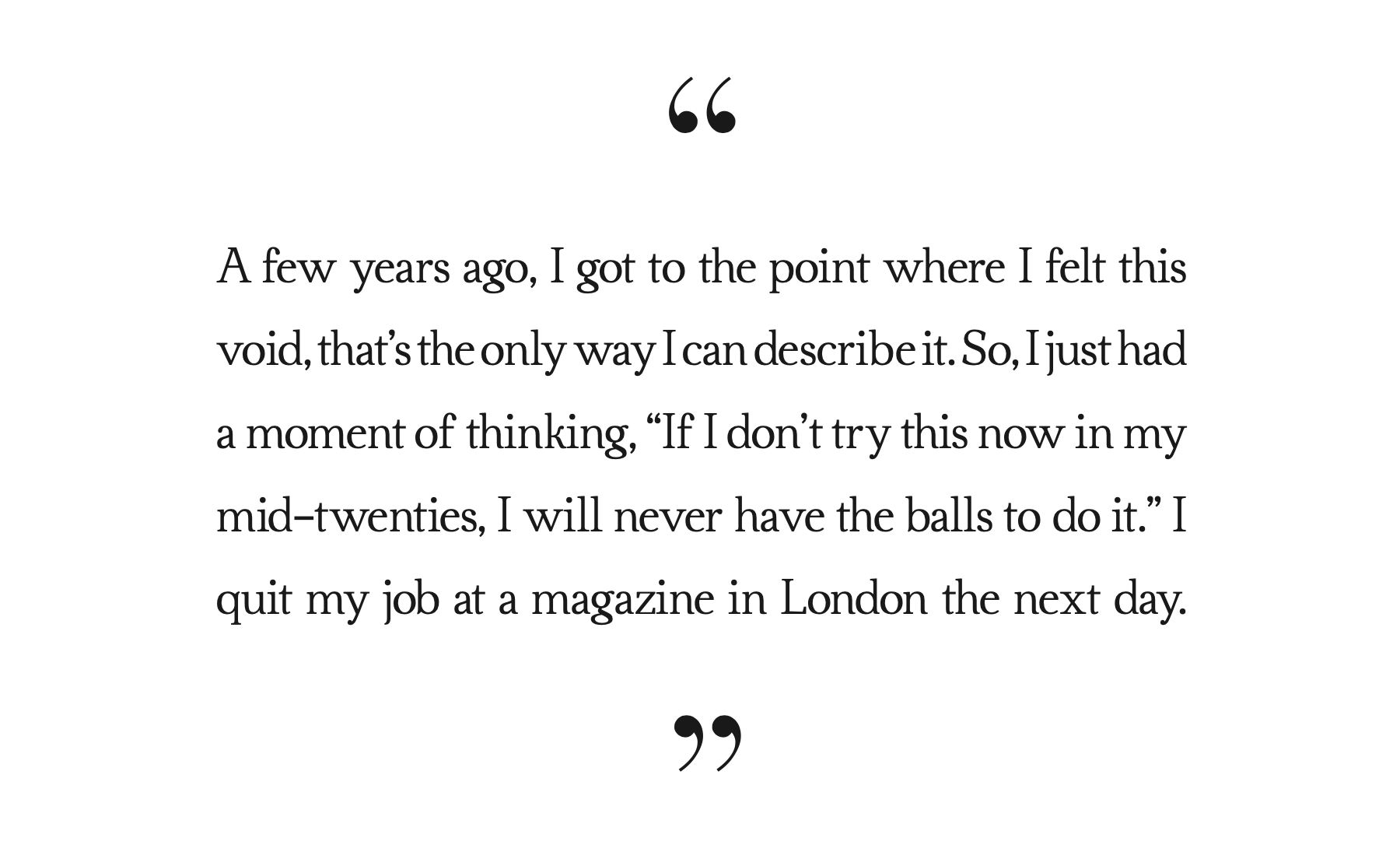 OJC: I know that you worked for some incredible magazines and dedicated your late teens and early twenties to this. Once you got there, did you feel disappointed, or did you feel like you achieved what you wanted to achieve, and it was now time to move on to something else?