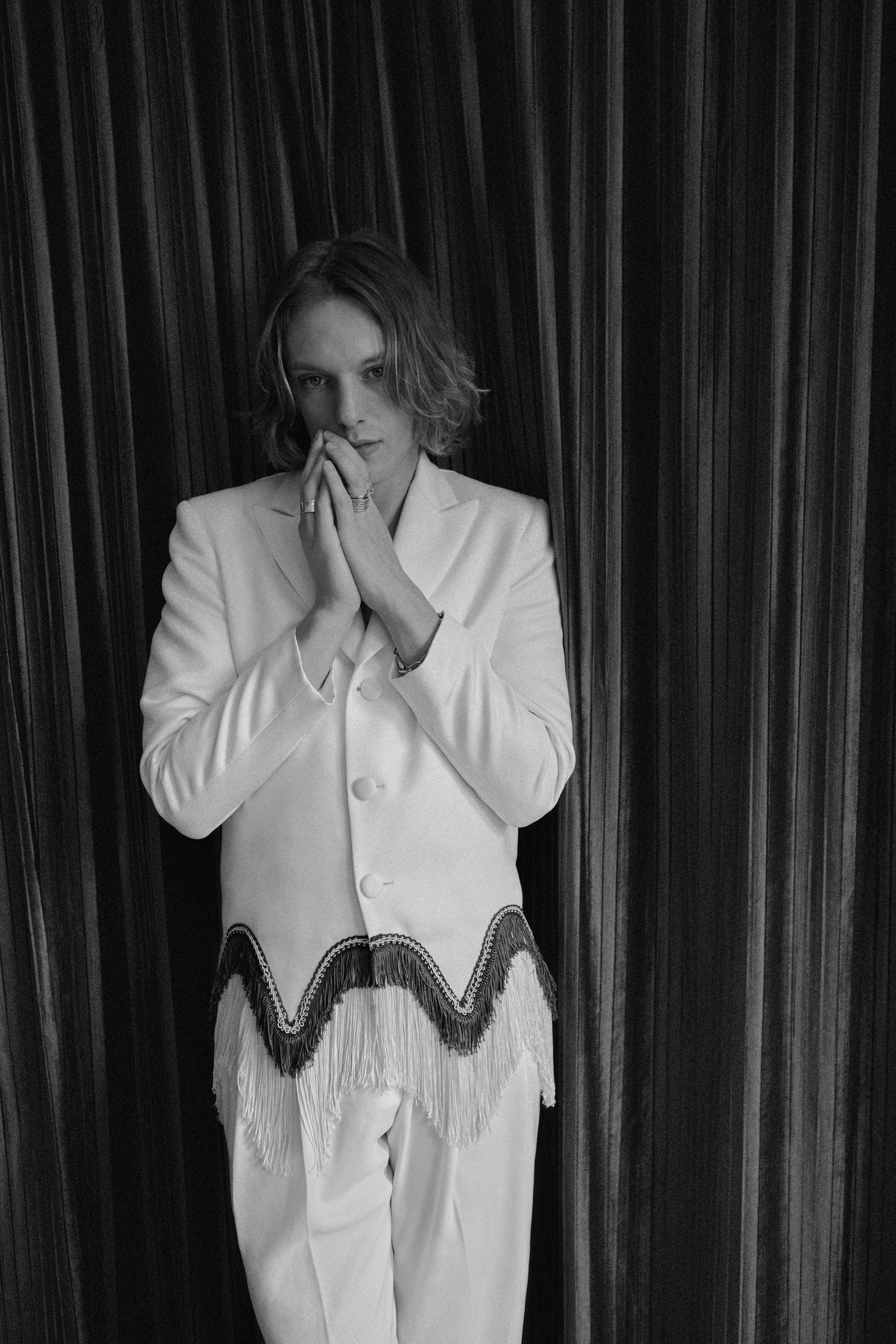 For those unfamiliar with Jamie Campbell Bower, his rise to stardom did not happen overnight. If you were around in the 2010s, you couldn’t miss him, whether it was on the big and small screen, on stage, or in fashion magazines. Then, he managed to continue his evolution as an artist and human half out of the spotlight. It was with that perspective that he focused on harnessing his creative energy and inner wisdom within music and film. “I think through the experience of both environments, you find out what works for you as an artist and what doesn’t. It’s important to take those lessons with you and to learn from your mistakes.”