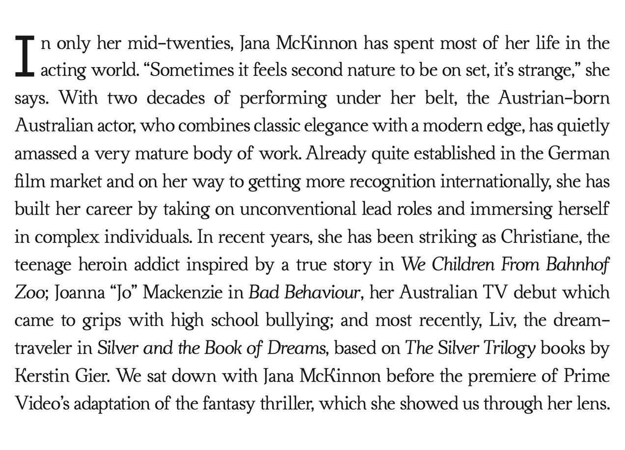 The Austrian-Australian rising star packed her analogue camera and took us with her to Berlin, attending the premiere of Silver and the Book of Dreams with her castmates and director Helena Hufnagel.