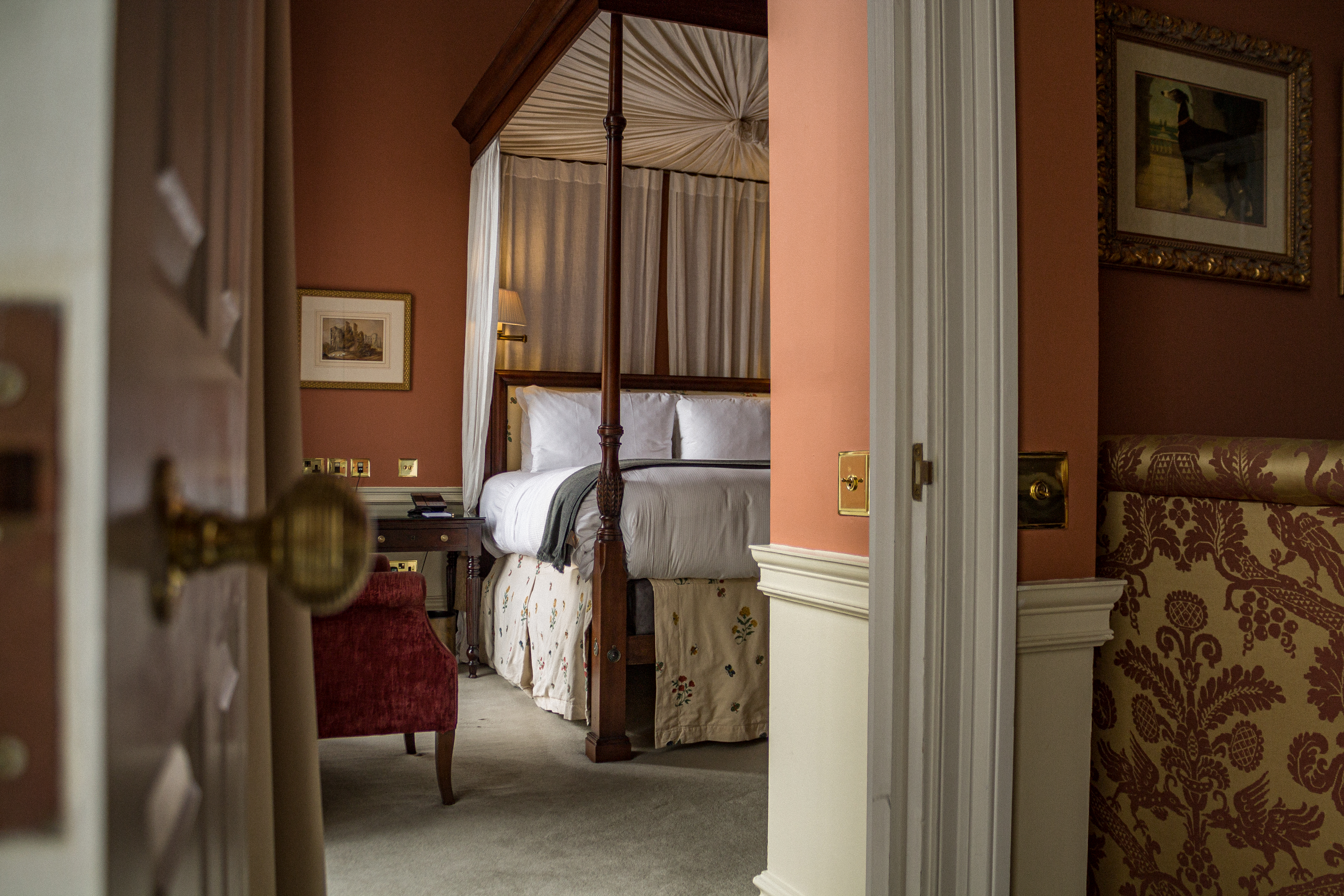 The crown jewel of the Roseate Suite — and most of the rooms — is the very tall lit à colonnes with its draped canopy. It’s a type of bed historically known for being a sign of royalty and decadence, and this one takes the room to the next level by creating a whimsical and homey atmosphere. Because it is such a delightful place to rest, you may want to spend all your time making the most of your lavish suite. It also provides the perfect backdrop to immerse yourself in the beauty of west London with a morning coffee that you can make yourself with the Nespresso Krups machine. The adjacent beautifully furnished living room has a tea and coffee station, bottled water, and a soft antique Victorian sofa you can sink into.