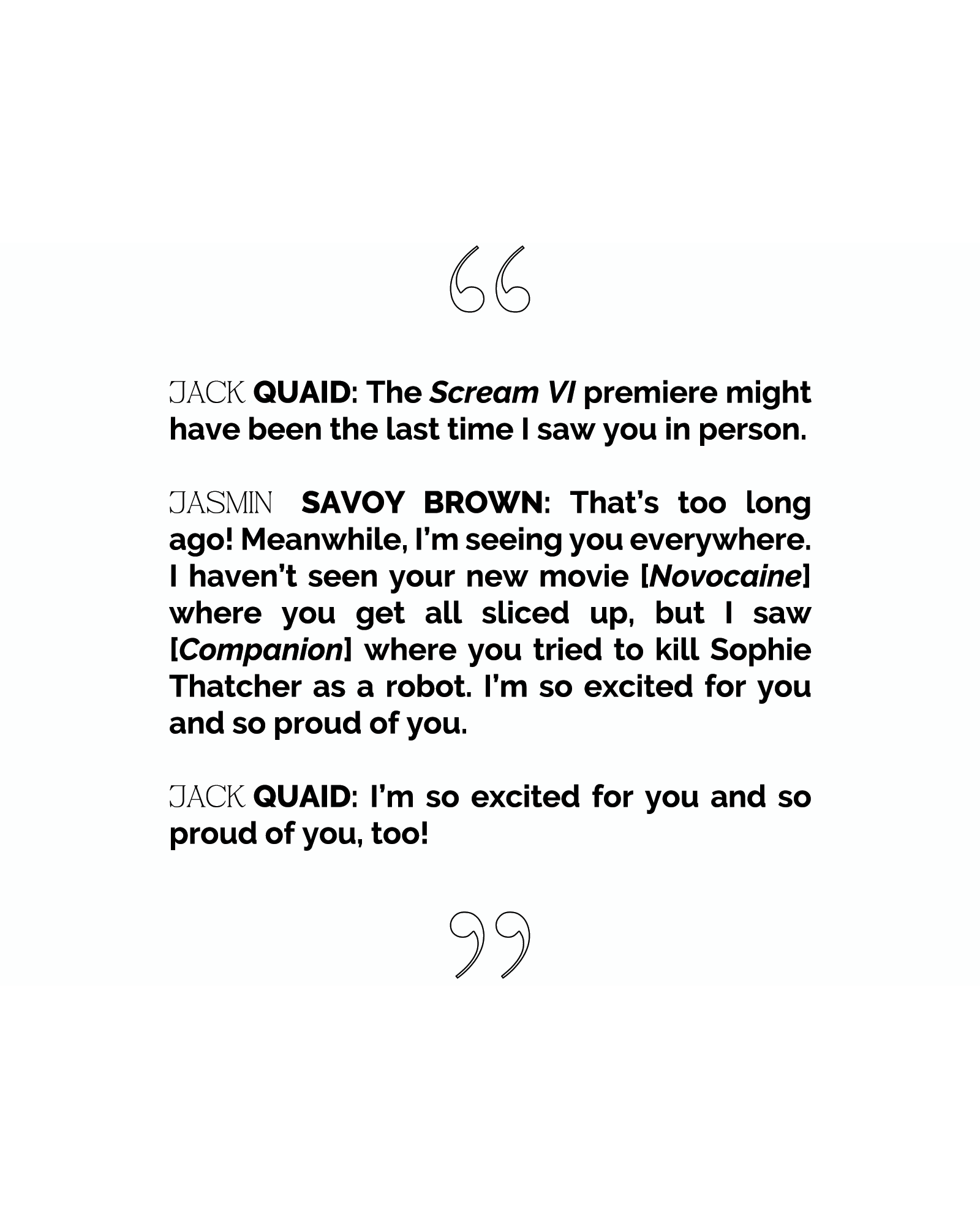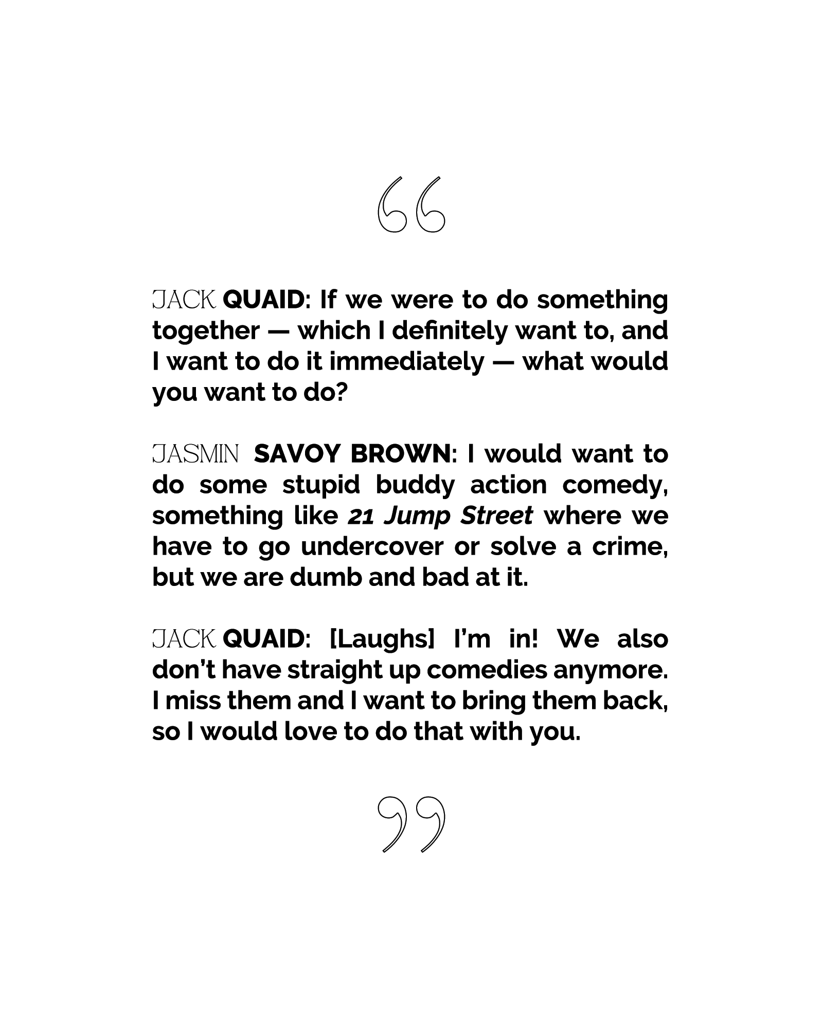 โI’m funny, Hollywood! And Jack and I are funny togetherโ โ Jasmin Savoy Brown and Jack Quaid share a glimpse of their sharp minds and effortless chemistry.