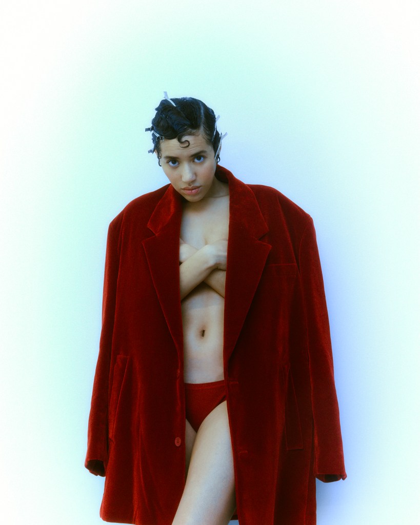 BLAZER: JW ANDERSON | PANTIES: WOLFORD | EARRINGS: MISSOMA
