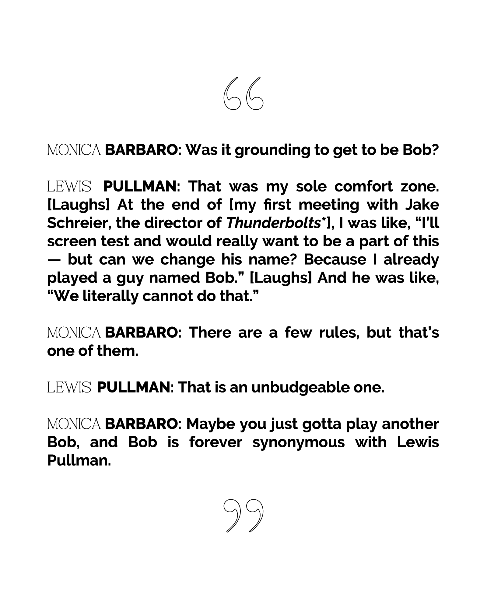 PHOTOGRAPHY: Raul Romo TALENT: Lewis Pullman INTERVIEW: Monica Barbaro VIDEOGRAPHY: Yong W Kim STYLING: Evan Simonitsch SET DESIGN: Carolina Benitez GROOMING: Barbara Guillaume at Forward Artists PRODUCTION: Jasmine Perrier MUSIC & SOUND DESIGN: Christophe Daigle LOCATION: NLA Studios SPECIAL THANKS: ID PR, Narrative PR & Disney