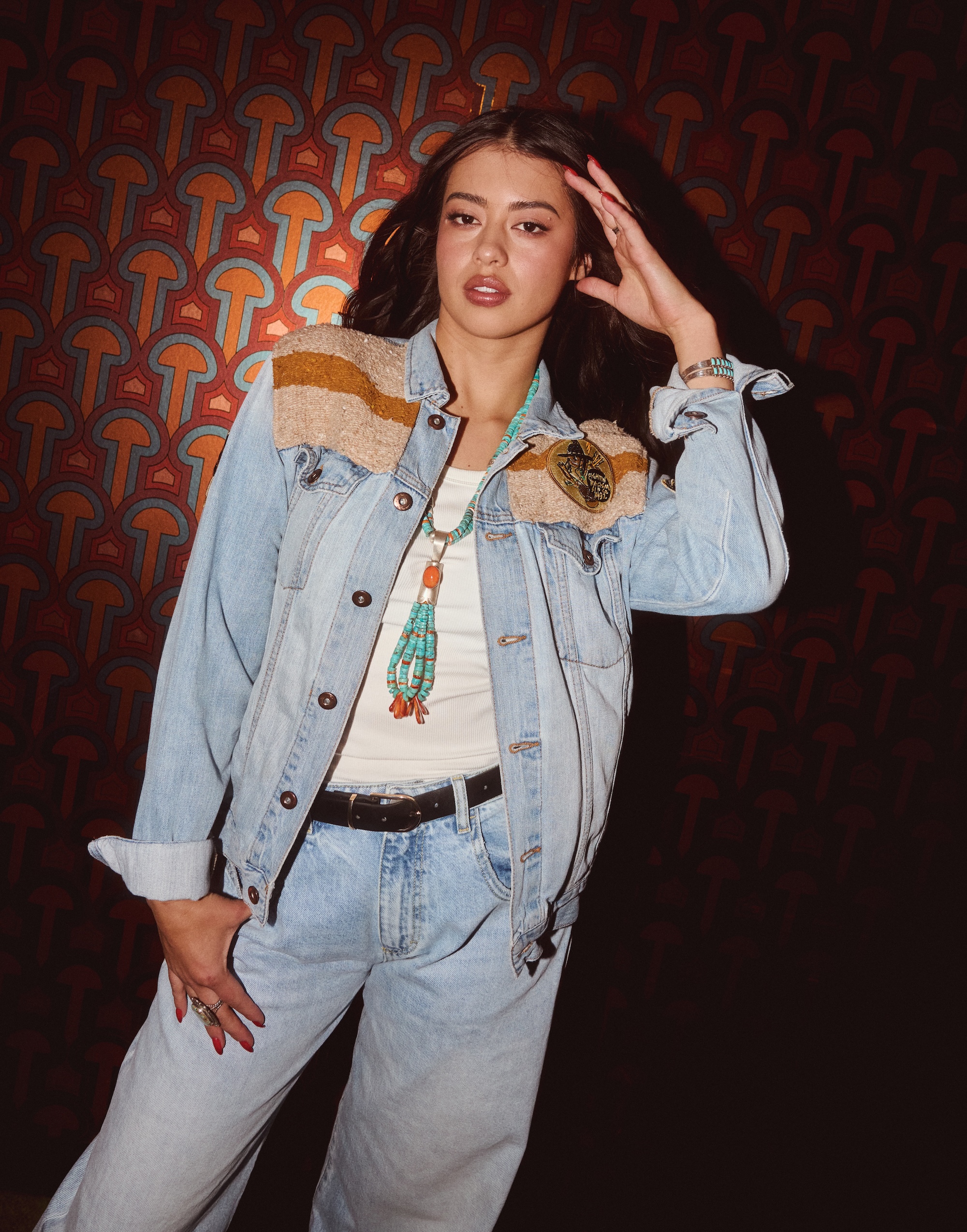 JACKET & JEWELRY: THUNDER VOICE CO. | TOP: RUE SOPHIE | JEANS: ICON DENIM L.A. | BELT: SHASHI