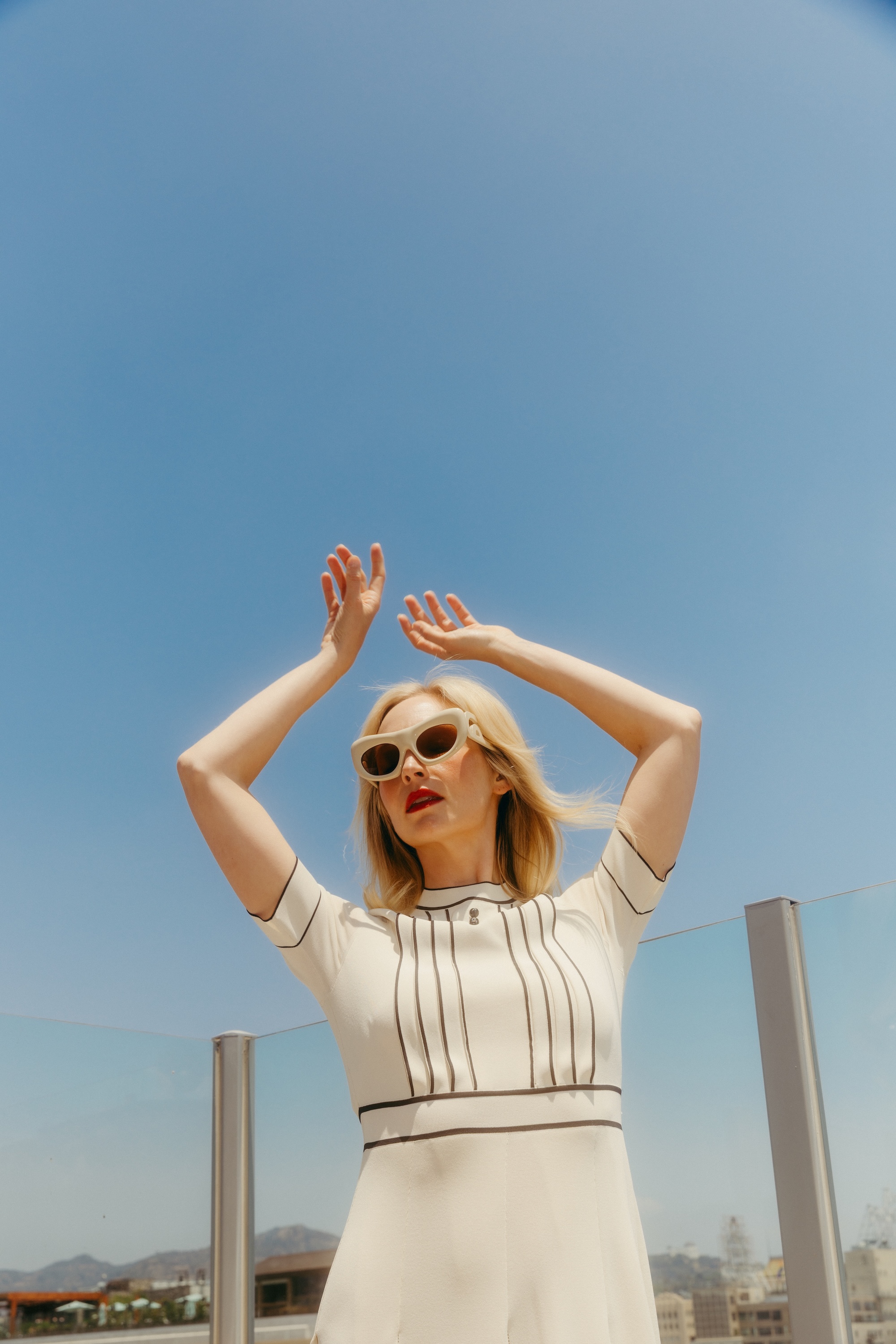 Bess is the youngest of the three Sinclair sisters and โwears that as if itโs a badge of honor.โ In a show about legacy and memory, the wardrobe also becomes a narrative force. โI wish I could dress like Bess Sinclair every single day. Her outfits were one of my favorite elements of the production,โ King acknowledges with a laugh while recalling the sculpted silhouettes and floral prints that define her character’s style. Itโs tailored, tasteful, and quietly commanding โ a faรงade of perfection that hides layers of vulnerability. โI loved that in this show, even though they are isolated on their own private island and amongst their own family members, there is all the pomp and circumstance of getting dressed for these big family lunches and dinners. I think that says a lot about them.โ