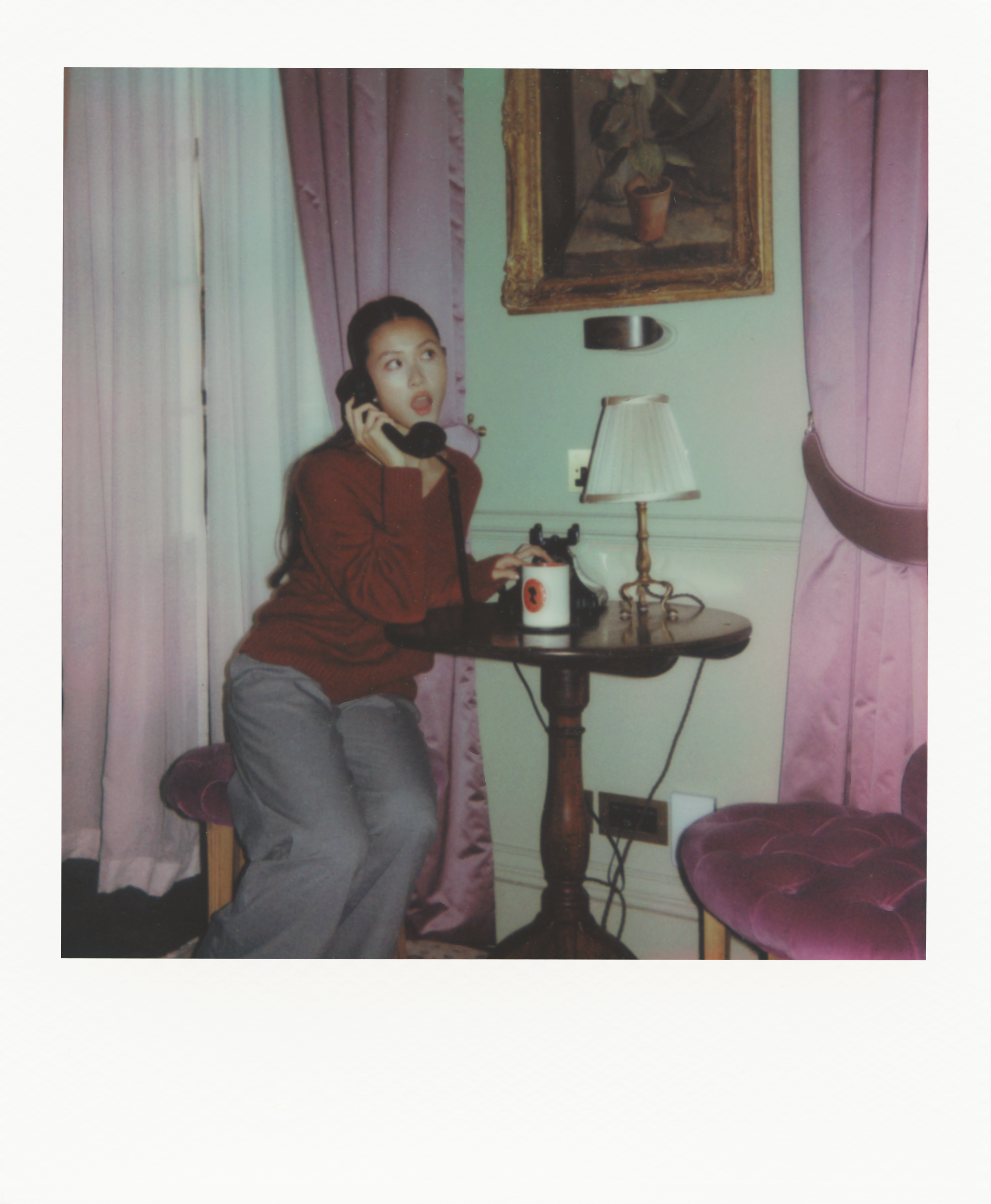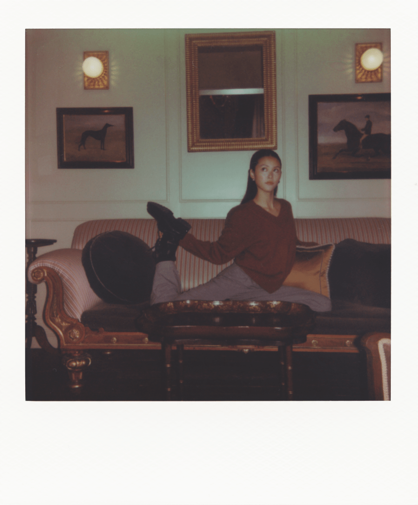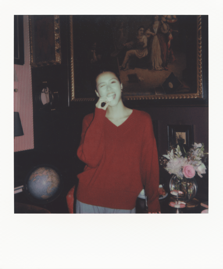 In front of the camera, Wei brings the enchanting rooms of the Henry’s to life with her joy, light, and grace. Casually dressed in a red jumper and grey tailored trousers, she describes her style as “a good mix of things.” Then she explains, “I don’t always want to be super girly, I don’t always want to be super cool.” That sense of authenticity guided how she approached this press run. “I remember asking my stylist Aimée [Croysdill], who I just started working with when I was cast in Bridgerton, about method dressing, and she was like, ‘It’s fun and it’s great, but at the same time with events like that, you want to show yourself.’”