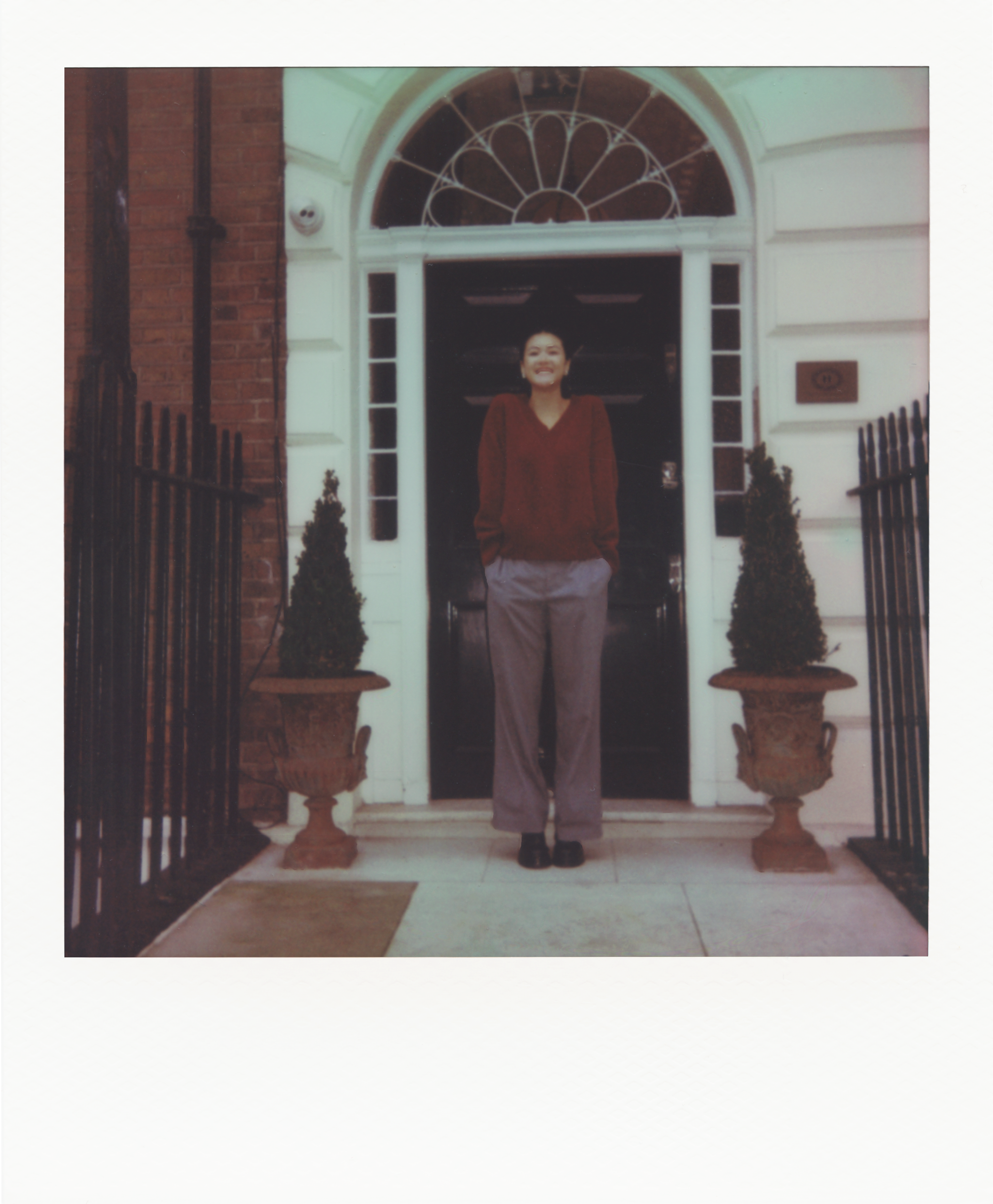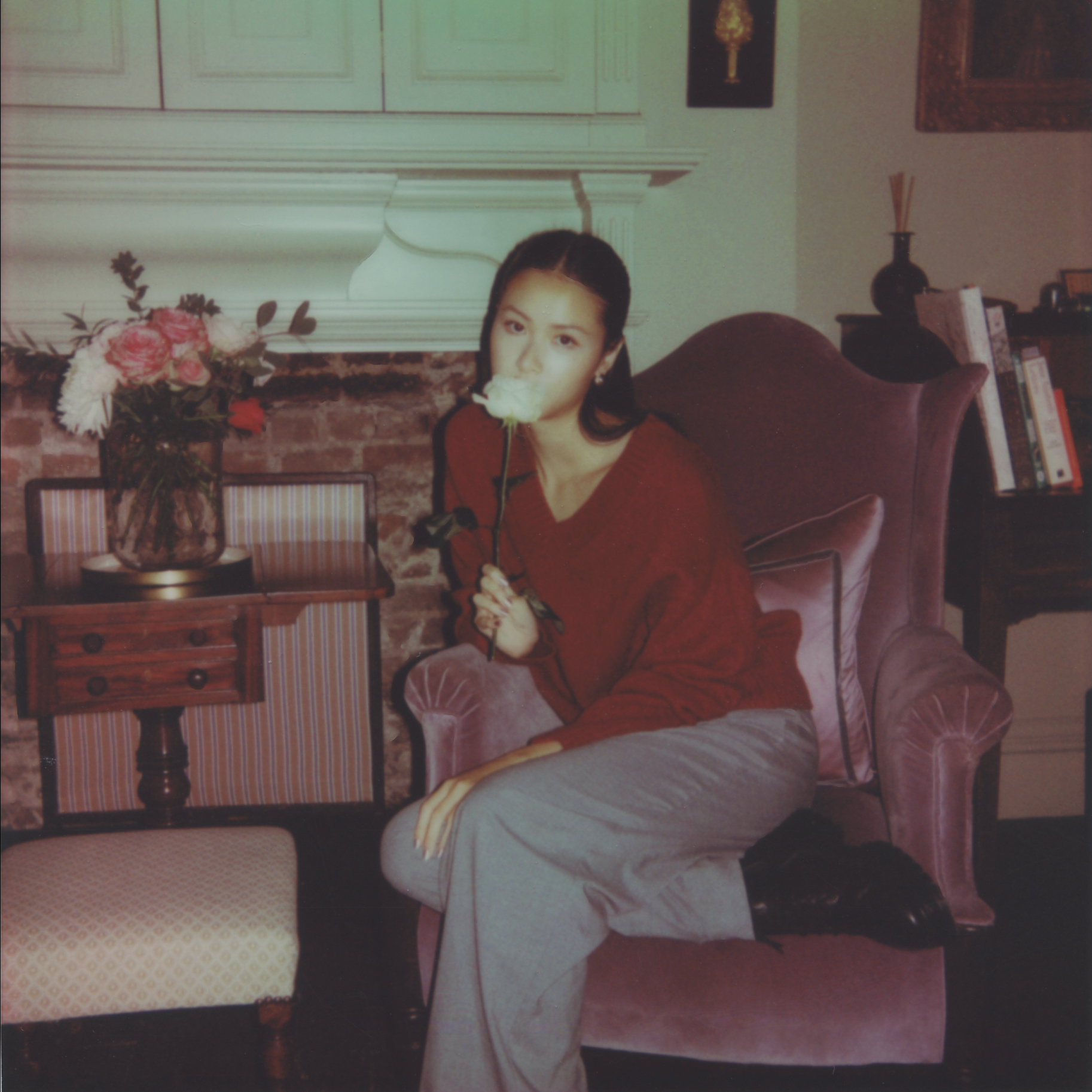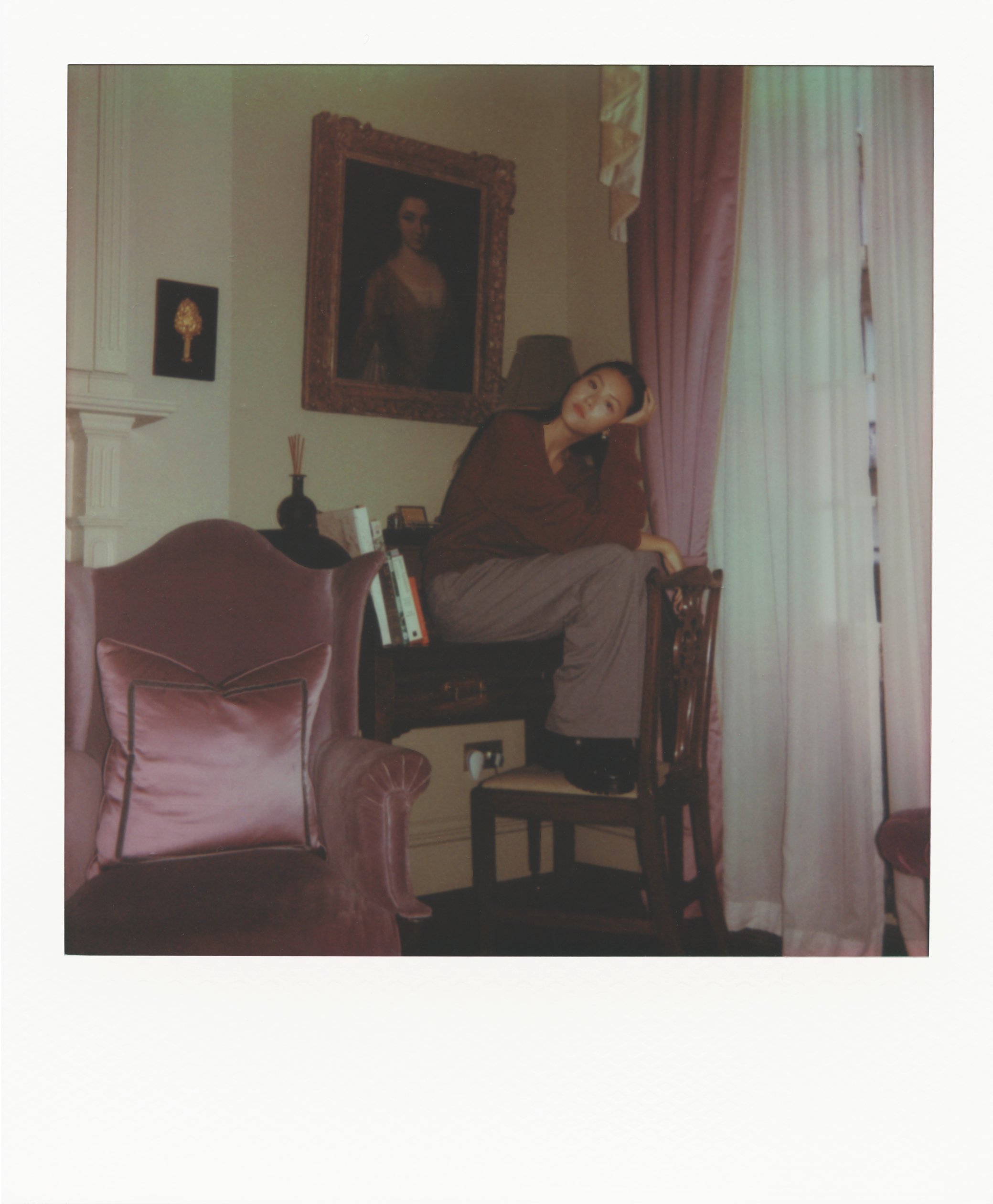 In front of the camera, Wei brings the enchanting rooms of the Henry’s to life with her joy, light, and grace. Casually dressed in a red jumper and grey tailored trousers, she describes her style as “a good mix of things.” Then she explains, “I don’t always want to be super girly, I don’t always want to be super cool.” That sense of authenticity guided how she approached this press run. “I remember asking my stylist Aimée [Croysdill], who I just started working with when I was cast in Bridgerton, about method dressing, and she was like, ‘It’s fun and it’s great, but at the same time with events like that, you want to show yourself.’”