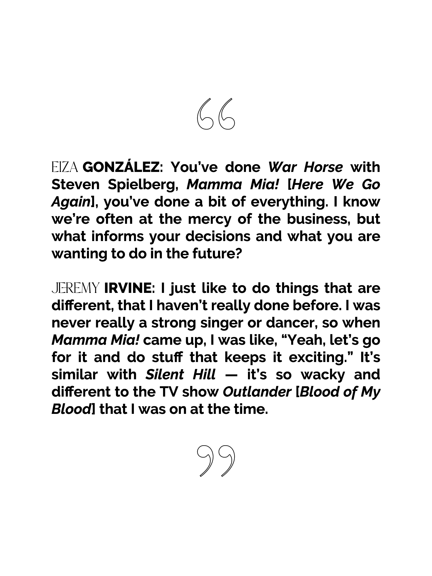 “It felt a bit risky and it wasn’t like anything I’ve done before” — Jeremy Irvine reveals to Eiza González how he entered the fog and returned from it.